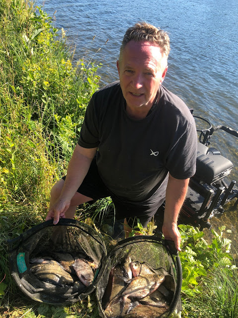 Both of us decided to place the boxes in the water at about 1-2 metres out so giving an advantage of being close to the water and gaining extra pole length .